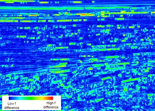 Frequency change QC volume showing minor frequency differences between two stacks.