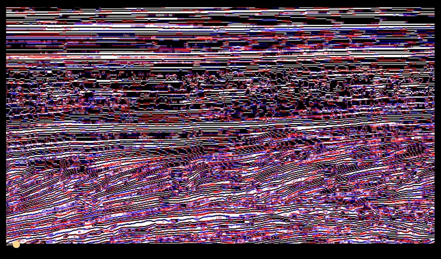 Bedform stack volume showing areas with good alignment in black and areas of worse alignment in red and blue.